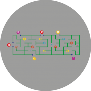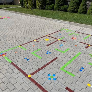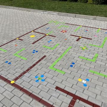 Jest to plansza do zabaw na spostrzegawczość, koncentrację, orientację w przestrzeni. Gra jest pewnego rodzaju łamigłówką, zmuszającą do myślenia i rozwagi. W labirynt można grać indywidualnie, jak i zespołowo. Kropki mogą mieć wiele znaczeń. Przykładowo można przypisać do danego koloru pytanie lub ćwiczenie ruchowe. Mnogość wariantów jest zależna tylko od wyobraźni gracza :)