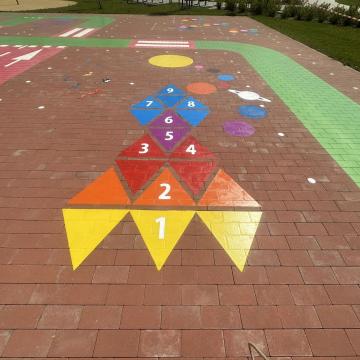 Jest to nowatorski i abstrakcyjny wariant tradycyjnej gry w klasy składający się z 18 kolorowych trójkątów, tworzących kosmiczny, intrygujący wzór. Gra zawiera plansze ze słońcem i planetami, które stanowią dodatkowe pola do gry, rozwijania wyobraźni, tworzenia własnych scenariuszy oraz umożliwiają dzieciom przeżycie wielu wspaniałych przygód. Gra może służyć również do nauki nazw planet, ich kolejności od słońca, oraz wielu innych zabaw, od gier w kole (słońcu) począwszy. W razie potrzeby zagospodarowania większej ilości miejsca na podwórku/boisku - istnieje możliwość poszerzenia standardowej wersji gry o dodatkową “Galaktykę”. Dzięki zwiększonej liczbie trójkątów umożliwia zabawę liczniejszej grupie dzieci - na większych przestrzeniach. Idealnie sprawdza się na boiskach, placach zabaw oraz parkach.
