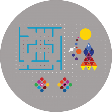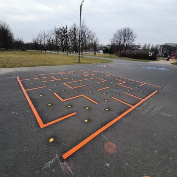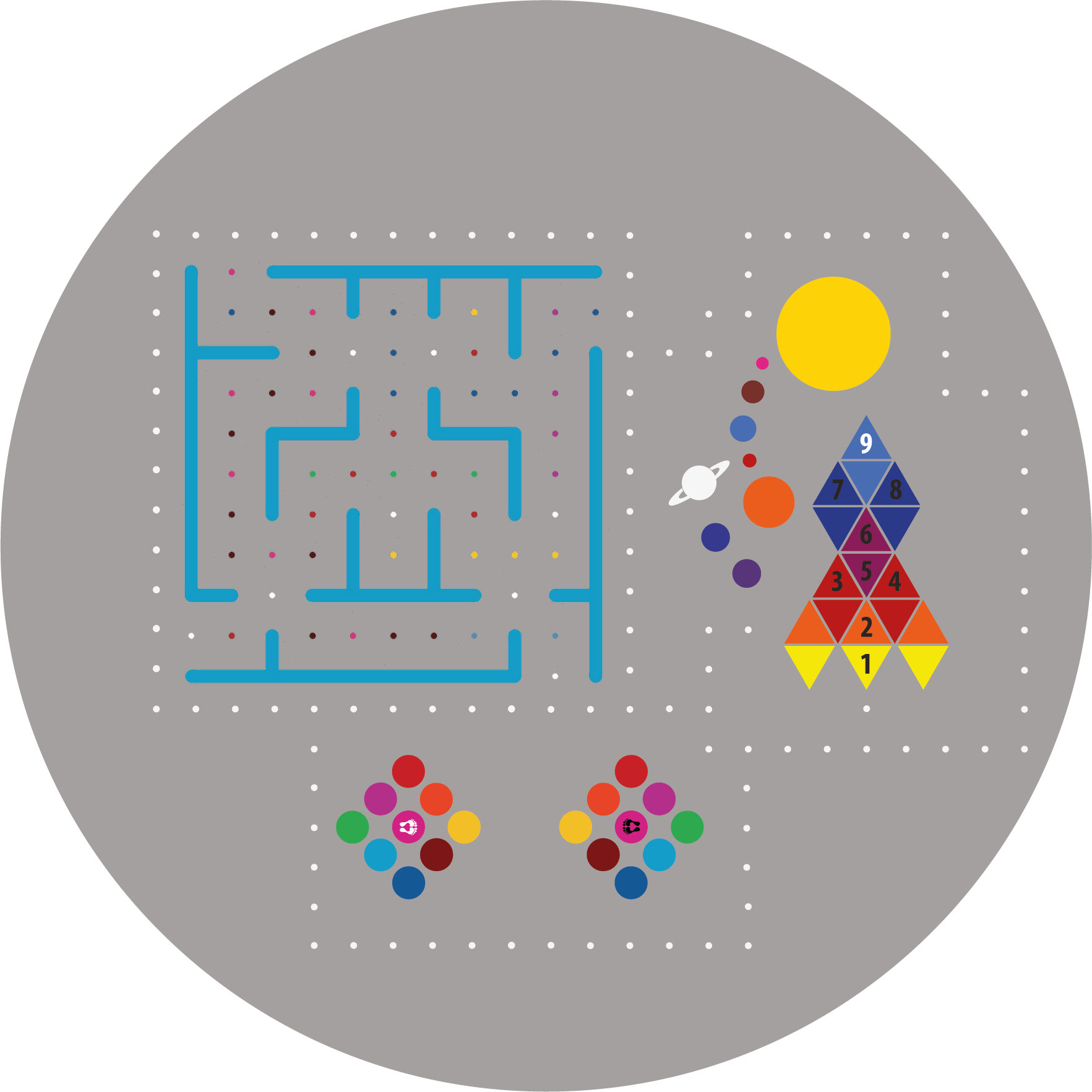 Zestaw nr 2 składa się z 3 szt. gier tj.: Lustro2, Rakieta Planety, Labirynt. To kolorowe, abstrakcyjne i zróżnicowane zestawienie gier idealne do aplikacji na szkolnym boisku. Dzięki korzystnemu rozstawieniu zestawu, korzystać może z niego wiele grup naraz.