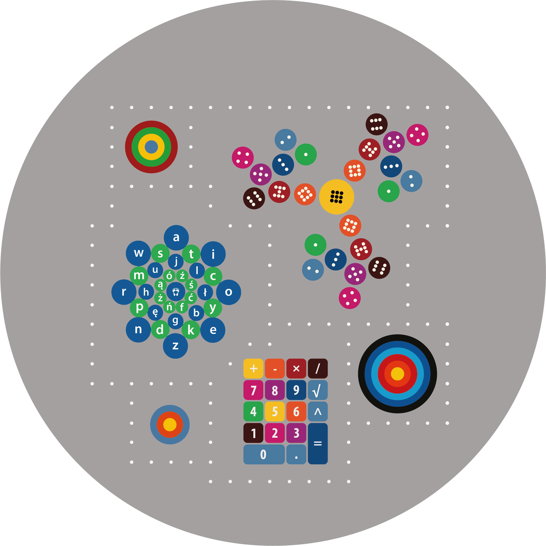 Zestaw nr 6 ( 4 szt. gier) to kombinacja takich gier jak: Tarcze, Alfabet, Guziki potrójne, Kalkulator. To unikalna propozycja, stworzona np. do prowadzenia zajęć dydaktycznych z matematyki, w nowatorski, ciekawy sposób.
