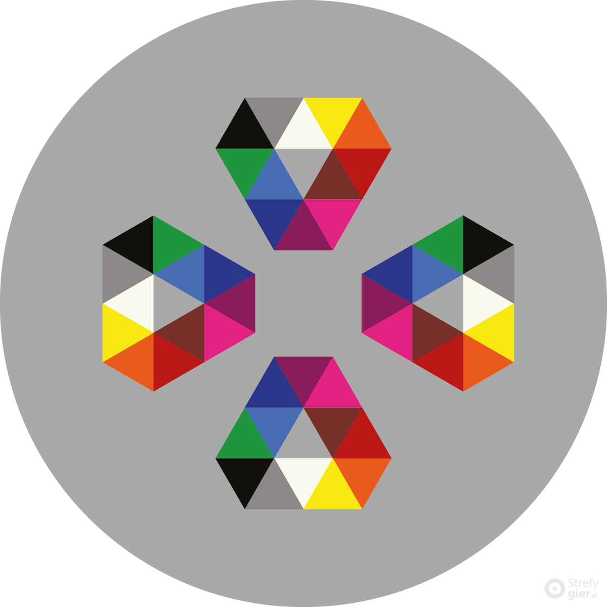 Zwierciadło Lider w rytm muzyki przez 3, 6 lub 9 sekund prezentuje układ choreograficzny. Zadaniem naśladującego/naśladujących jest jak najlepsze odtworzenie wszystkich elementów układu. Krzywe Zwierciadło Lider prezentuje układ choreograficzny. Zadaniem naśladującego jest parodiowanie ruchów i gestów lidera, dla rozśmieszenia wszystkich uczestników zabawy. Pomniki Lider bądź liderzy prezentują grupie figurę akrobatyczną na polach planszy, zadaniem pozostałych graczy jest dokładne powtórzenie figury i utrzymanie jej przez jak najdłuższy czas (polecamy uzbroić się w aparat fotograficzny by uwiecznić co śmieszniejsze/ciekawsze akrobacje). Taniec Wybieramy podkład muzyczny. Uczestnicy tańczą do rytmu, starając się precyzyjnie poruszać tylko po kolorowych polach planszy. Skojarzenia Skacząc po kolorowych polach planszy, uczestnicy mają za zadanie dobrać do koloru właściwe wyrazy z wybranej grupy (np. owoce, warzywa, kwiaty). Plansza może służyć do tworzenia rymów po polsku lub w językach obcych (np. red-bread, green-screen) oraz innych zabaw inspirowanych kolorami. Kółko i krzyżyk W połączeniu z sześcioma woreczkami, trzema czarnymi i trzema białymi, na polach planszy można rozegrać drużynową grę w kółko i krzyżyk. Dwie drużyny ustawiają się w tej samej odległości od planszy i na sygnał, pierwsi zawodnicy z każdego zespołu, kładą woreczki na polach planszy. Wracając, po dotknięciu ręki kolejnego zawodnika – ten rusza i ustawia kolejny woreczek. Po trzeciej osobie, każdy kolejny gracz biegnie już bez woreczka, jedynie może przekładać wcześniej położone woreczki, aby w jednej linii pionowej, poziomej lub przekątnej zostawić trzy woreczki swojej drużyny.