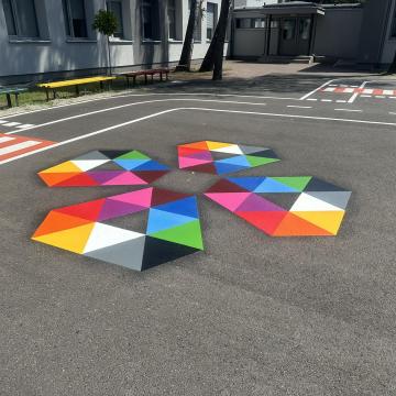 Kryształ 4 340x340 cm - to gra dla dwóch osób, polega na naśladowaniu ruchów, jak w lustrze, jednak ilość możliwych scenariuszy jest nieograniczona: gimnastyka, taniec, aerobik, zajęcia teatralne i wiele innych wariantów, które dziecko może samo wykreować i przenieść na kolorowych pól planszy.