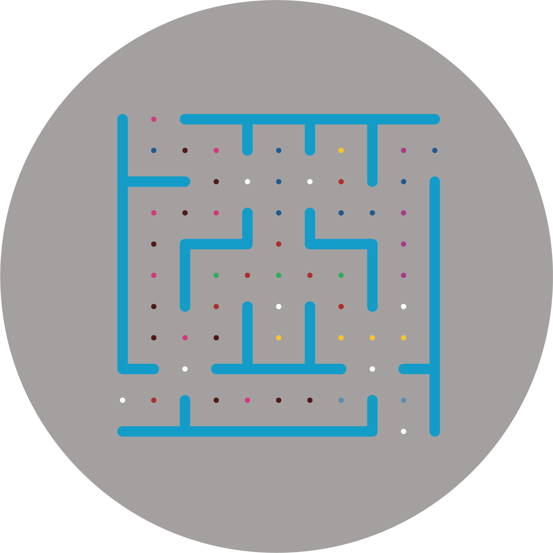 Labirynt kwadrat mały 360x360 cm - to plansza do zabaw na spostrzegawczość, koncentrację, orientację w przestrzeni. Gra jest pewnego rodzaju łamigłówką, zmuszającą do myślenia i rozwagi. W labirynt można grać indywidualnie, jak i zespołowo. Kropki mogą mieć wiele znaczeń, (nowa wersja labirynt kwadrat). Różne kolory. Przykładowo można przypisać do danego koloru pytanie lub ćwiczenie ruchowe. Mnogość wariantów jest zależna tylko od wyobraźni gracza :)