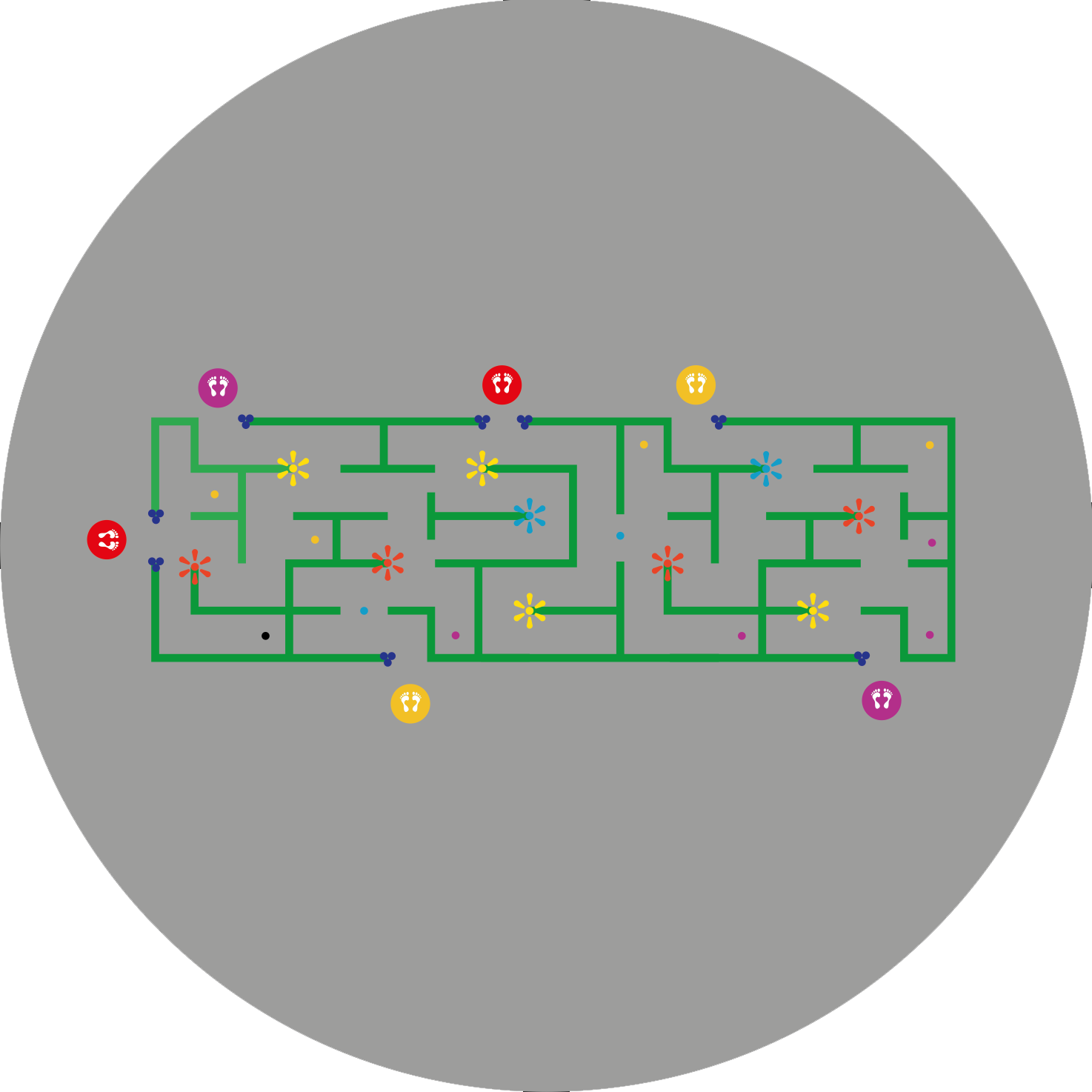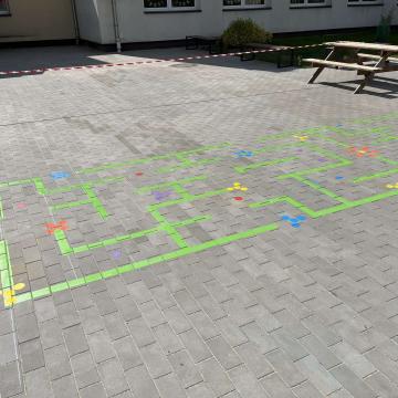 Labiryn to plansza do zabaw na spostrzegawczość, koncentrację, orientację w przestrzeni. Gra jest pewnego rodzaju łamigłówką, zmuszającą do myślenia i rozwagi. W labirynt można grać indywidualnie, jak i zespołowo. Kropki mogą mieć wiele znaczeń. Przykładowo można przypisać do danego koloru pytanie lub ćwiczenie ruchowe. Mnogość wariantów jest zależna tylko od wyobraźni gracza :)