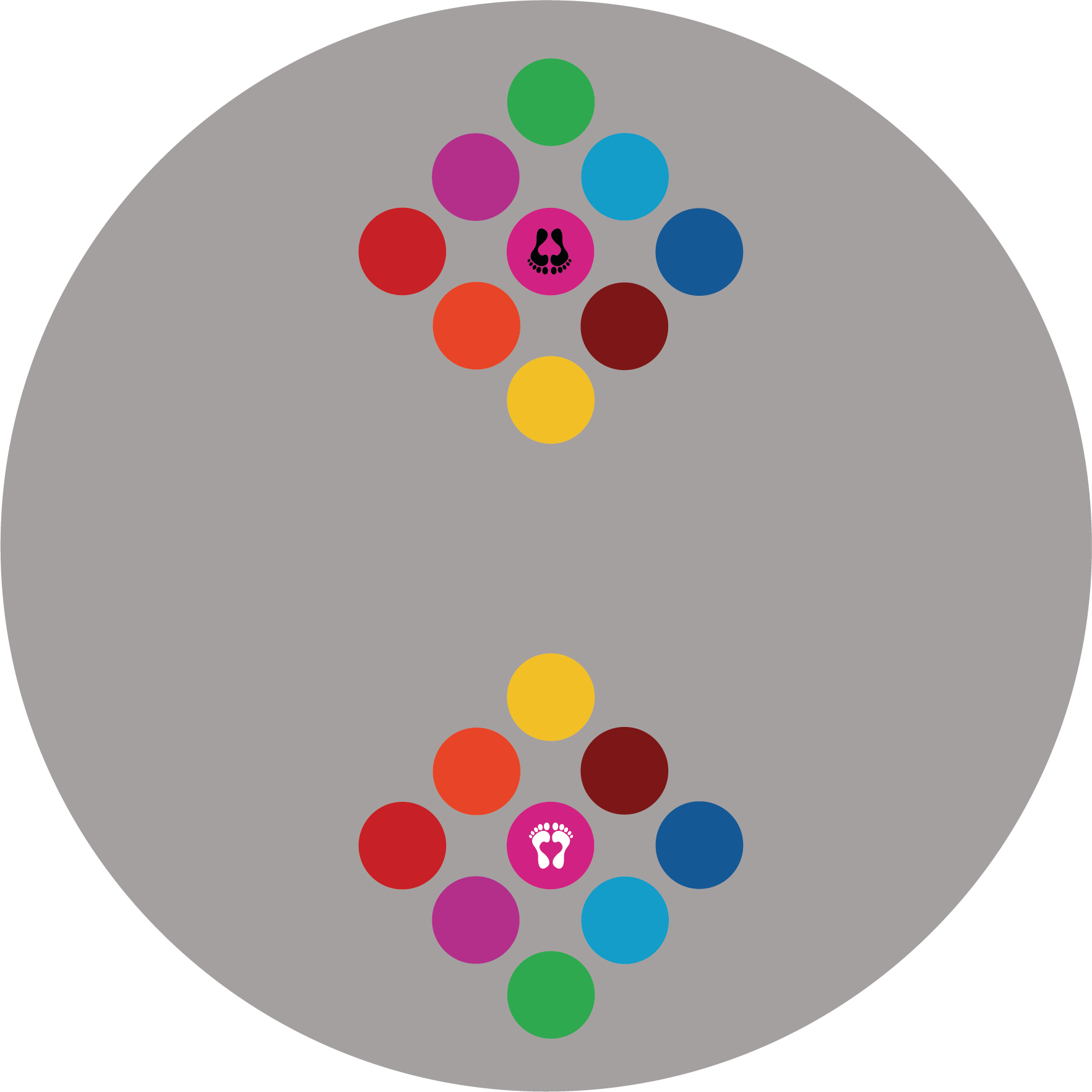 Jest to gra dla dwóch osób, polega na naśladowaniu ruchów (nowa wersja gry naśladuj mnie), jak w ustrze, jednak ilość możliwych scenariuszy jest nieograniczona: gimnastyka, taniec, aerobik, zajęcia teatralne i wiele innych wariantów, które dziecko może samo wykreować i przenieść na 9 kolorowych pól planszy.