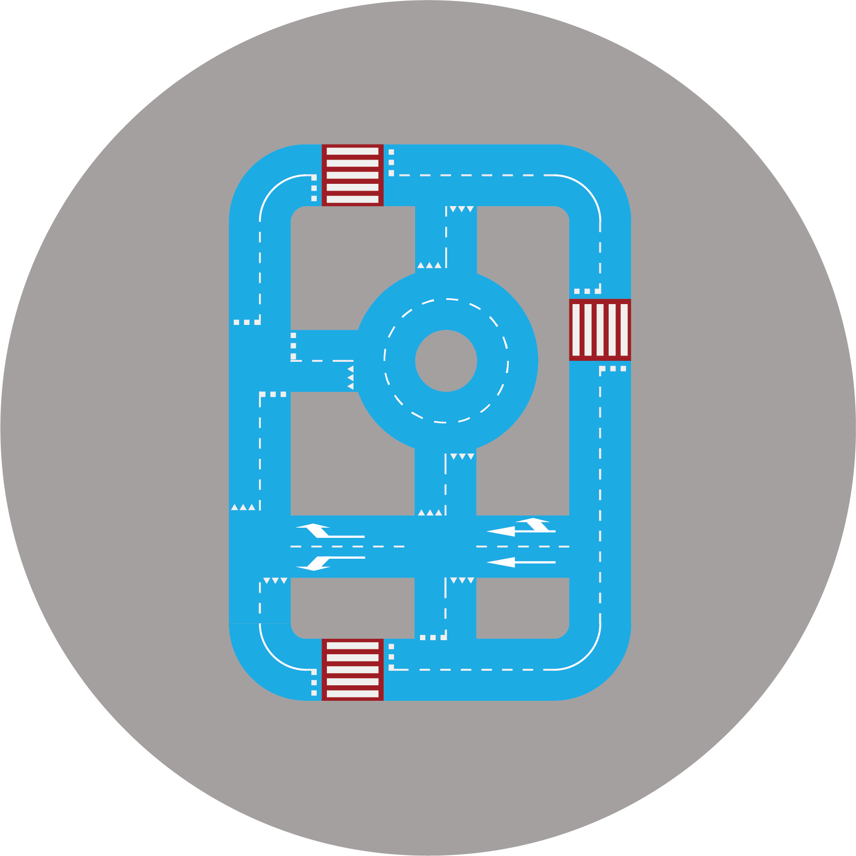 Miasteczko rowerowe BIG1 15x20 m to niebieskie miasteczko, z ruchem dwukierunkowym, wykorzystujące dużo elementów spotykanych w sytuacjach drogowych, przeznaczone dla starszych dzieci. System kolorowych kropek okalających miasteczko oraz łączący pola zabaw, tworzy z projektowanej przestrzeni jedną wielką grę. Ruch pieszy przenika się z rowerowym, dając sposobność zabawy wielu uczestnikom jednocześnie. Jeżdżący na rowerach zdobywają doświadczenie oraz umiejętności poznając podstawowe zasady bezpieczeństwa i ruchu drogowego, za to piesi uczestnicy, mogą rozwijać wyobraźnię oraz wykonywać różne ćwiczenia fizyczne.
