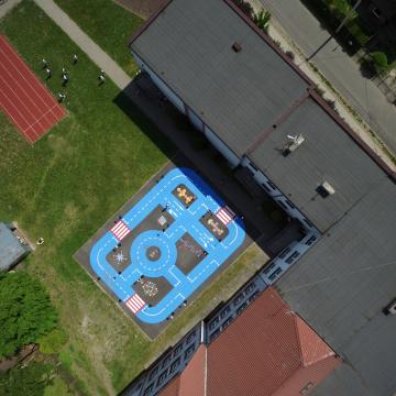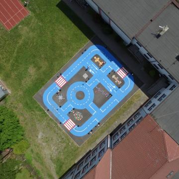 Cena obejmuje: malowanie ścieżek miasteczka, natomiast gry podwórkowe i znaki drogowe