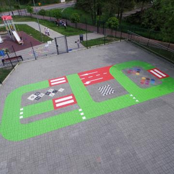 Cena obejmuje: malowanie ścieżek miasteczka, natomiast gry podwórkowe i znaki drogowe