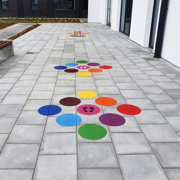 Zestaw nr 2 składa się z 3 szt. gier tj.: Lustro2, Rakieta Planety, Labirynt. To kolorowe, abstrakcyjne i zróżnicowane zestawienie gier idealne do aplikacji na szkolnym boisku. Dzięki korzystnemu rozstawieniu zestawu, korzystać może z niego wiele grup naraz.