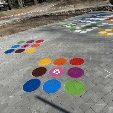 Zestaw nr 4 (4 szt. gier) charakteryzuje przewaga kolorów, abstrakcyjnych motywów oraz geometrycznych kształtów. Jest to średniej wielkości zestawienie, w którego skład wchodzą takie gry jak: Lustro2, Klasy papuga, Twister48+4, Labirynt koło mały. Zmusza do kreatywnego myślenia, pobudza wyobraźnie kolorami i wzorami, stwarza mnóstwo możliwości do gier zespołowych oraz aktywnego spędzenia przerwy. plansze sprawdzą się na każdym niezagospodarowanym miejscu na podwórku, placu zabaw czy boisku.